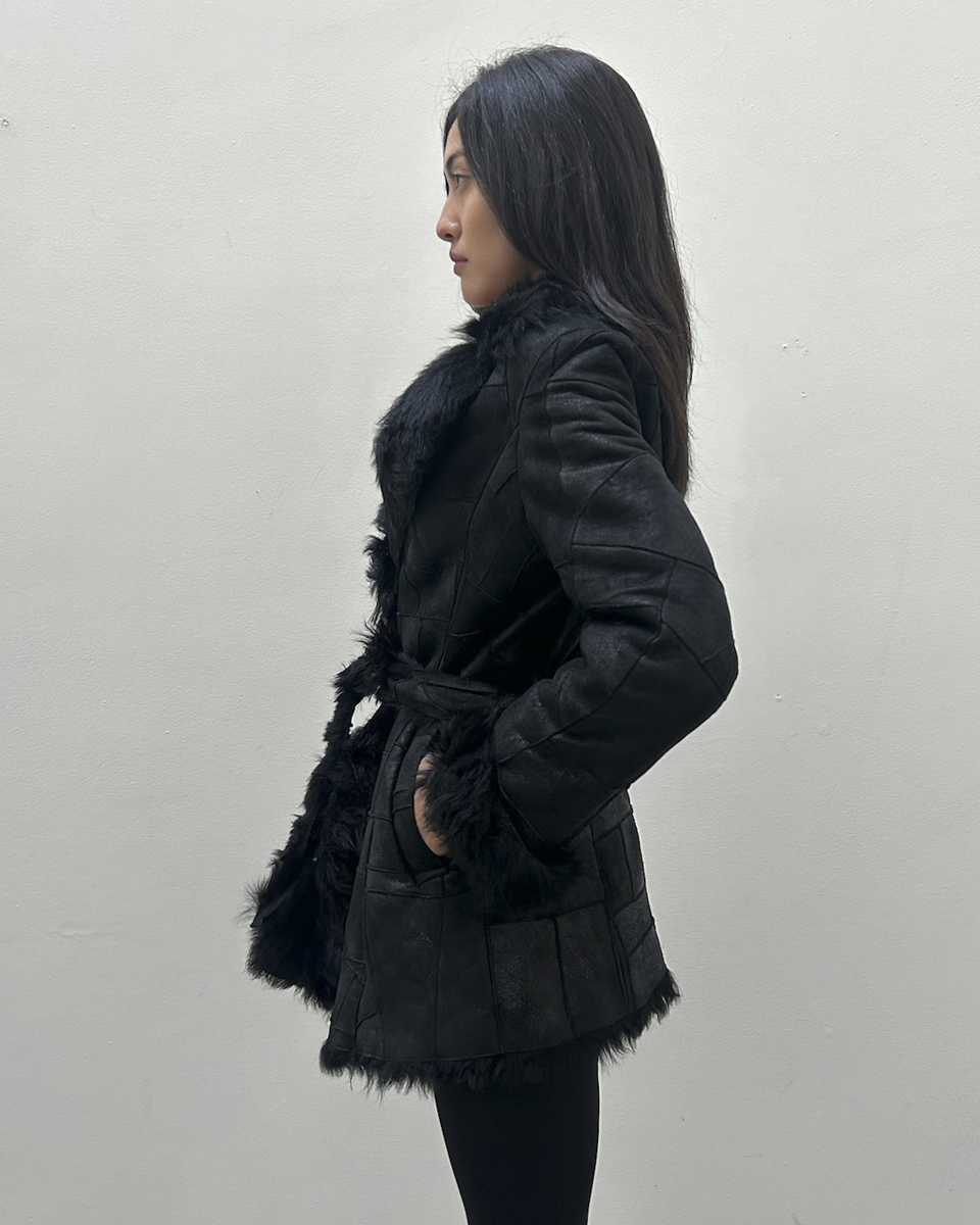 Atsuro Tayama (2000s) patchwork-style sheepskin black shearling coat