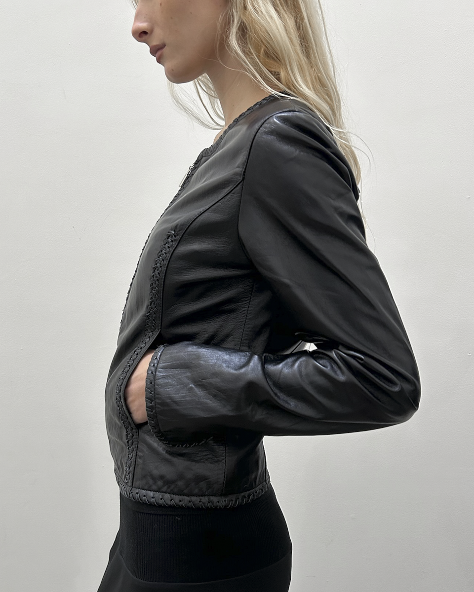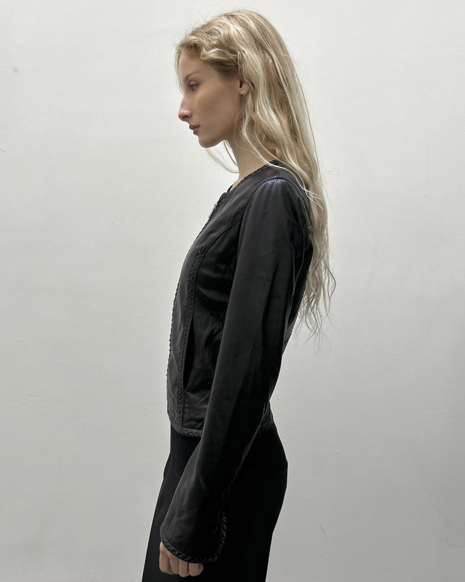 Balmain Paris by Christophe Decarnin (2000s) black lamb leather jacket with braided detail