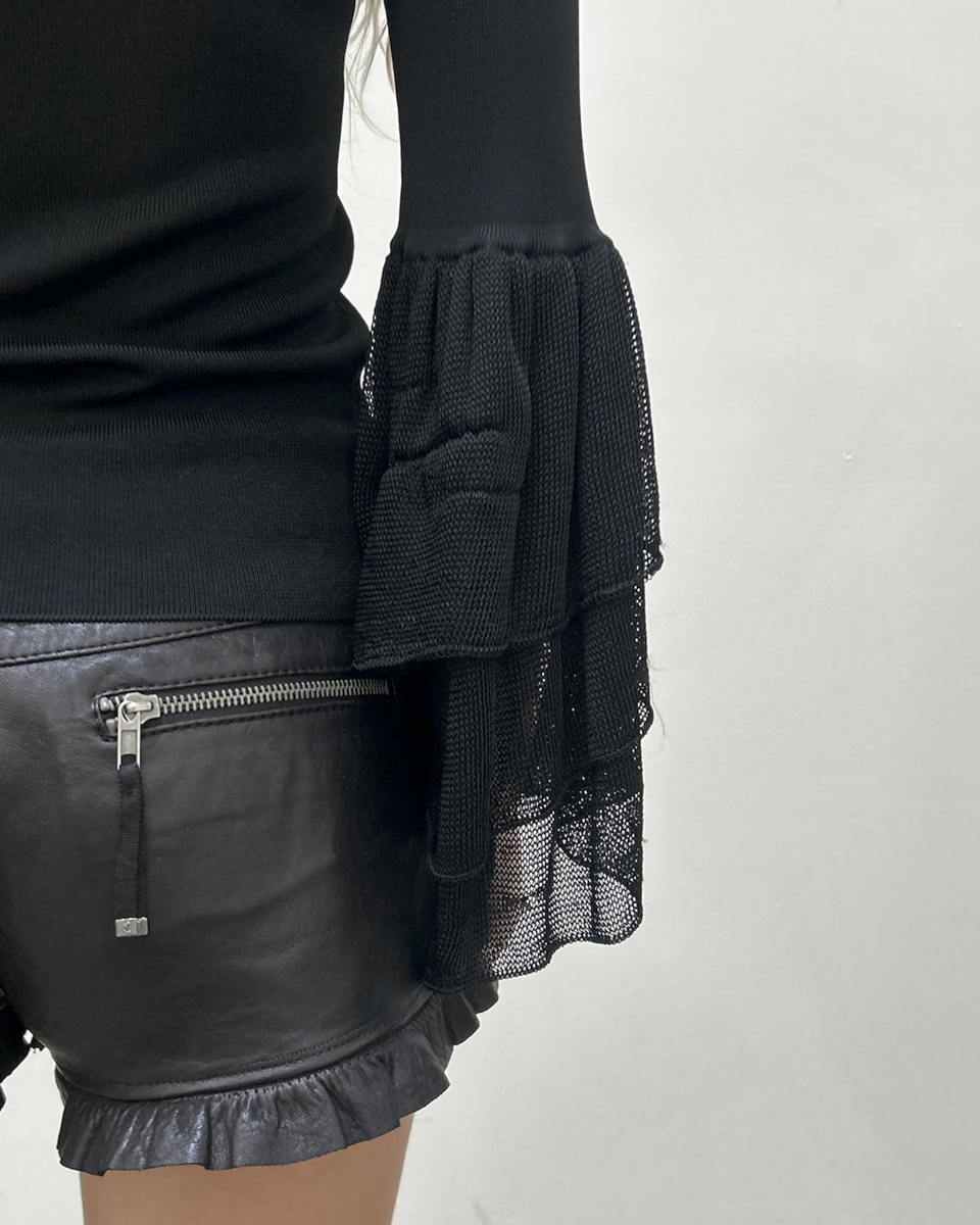 Emporio Armani black knit boatneck top with pleated bell sleeves