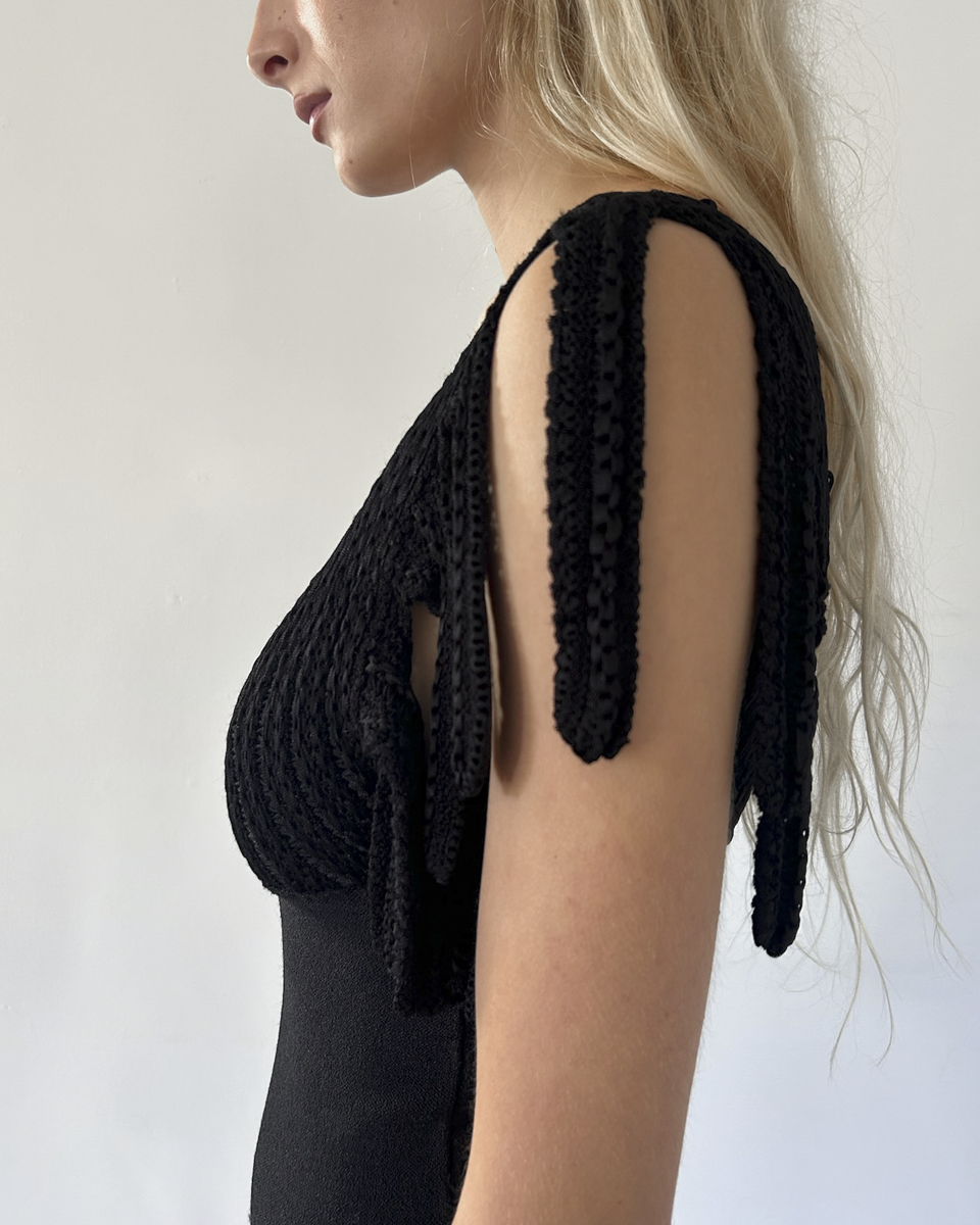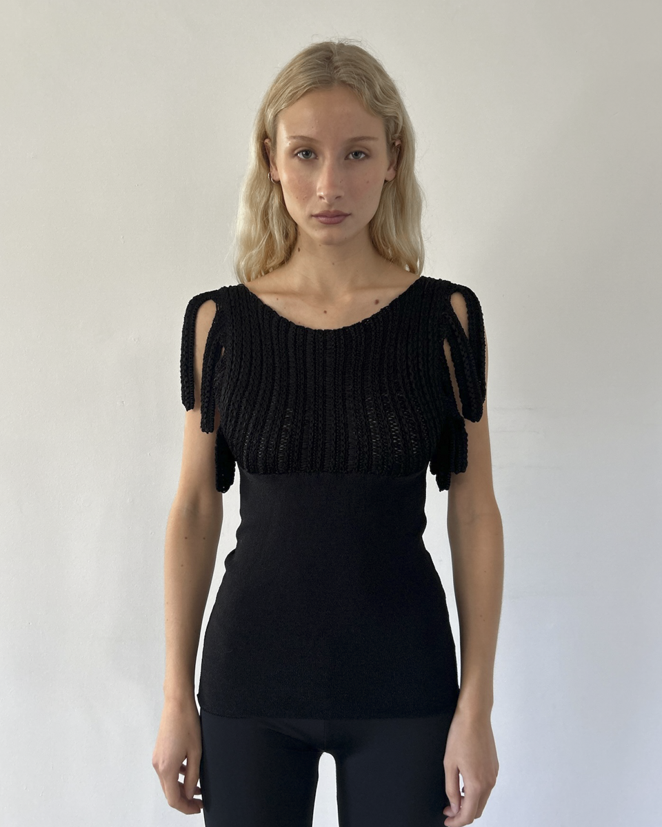 Emporio Armani black sweater top with fringe sleeves