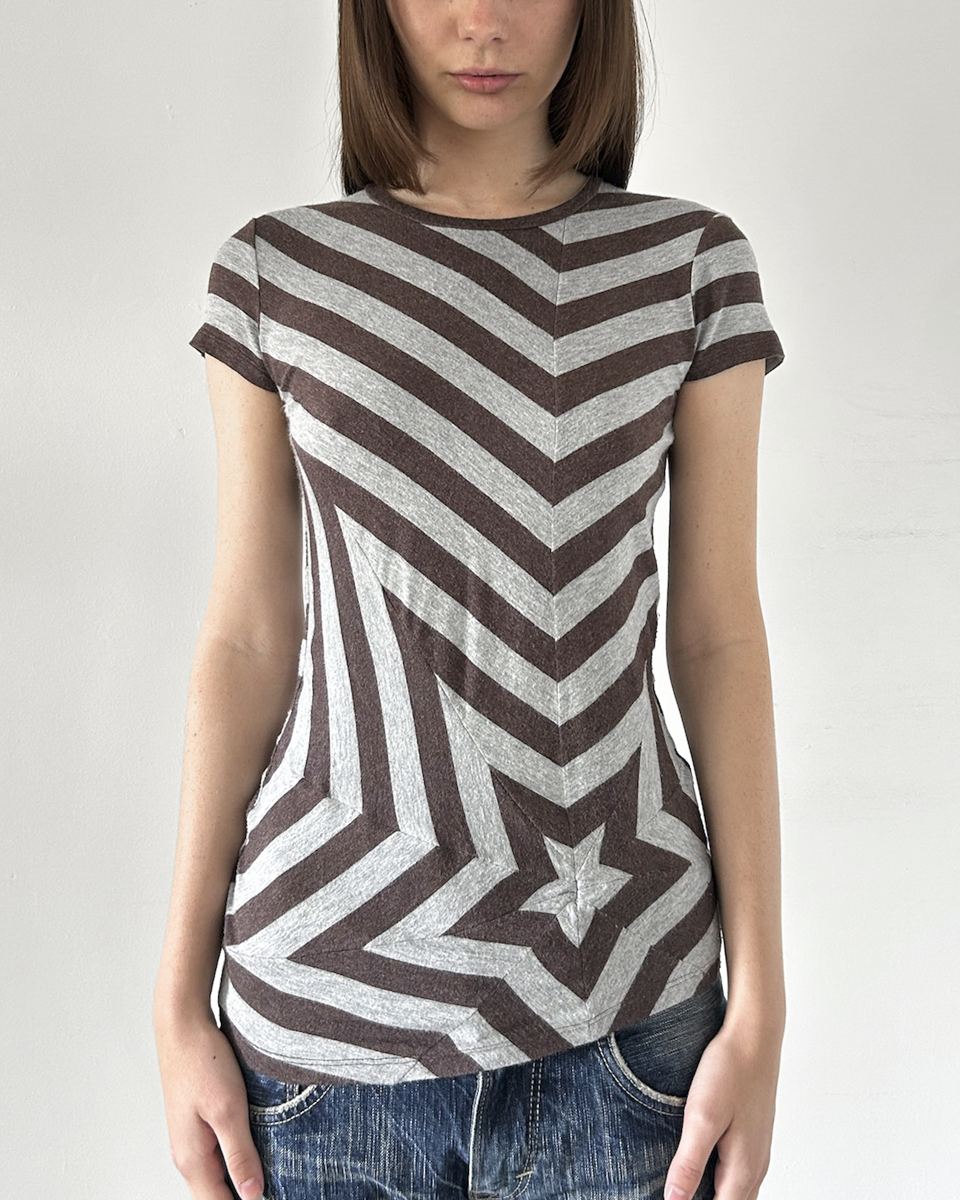 Emporio Armani brown & grey striped top with star design