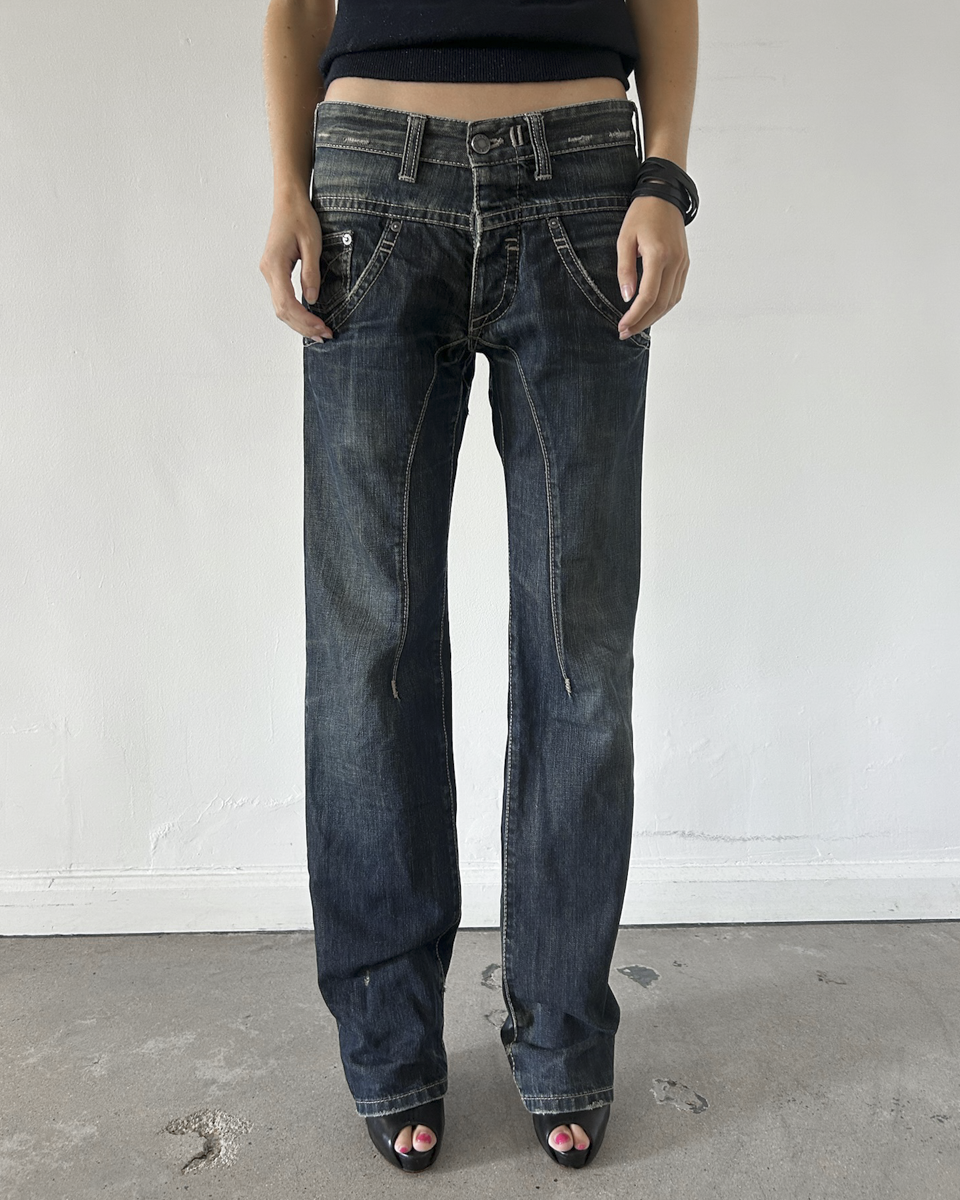 Neil Barrett dark wash low-rise double waist straight leg denim