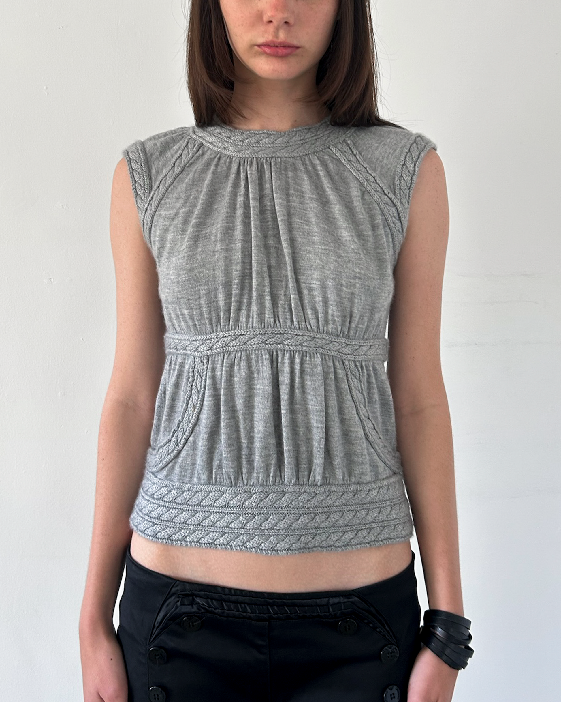 Louis Vuitton grey knitted sleeveless cashmere sweater top with braided detail