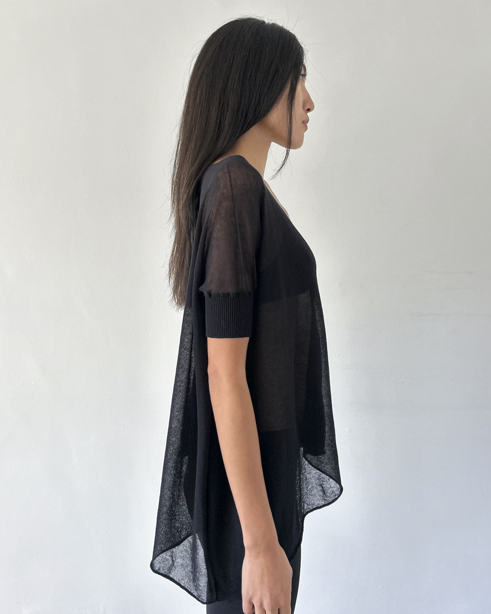 Sarah Pacini black oversized v-neck asymmetrical sweater top with sheer side panel