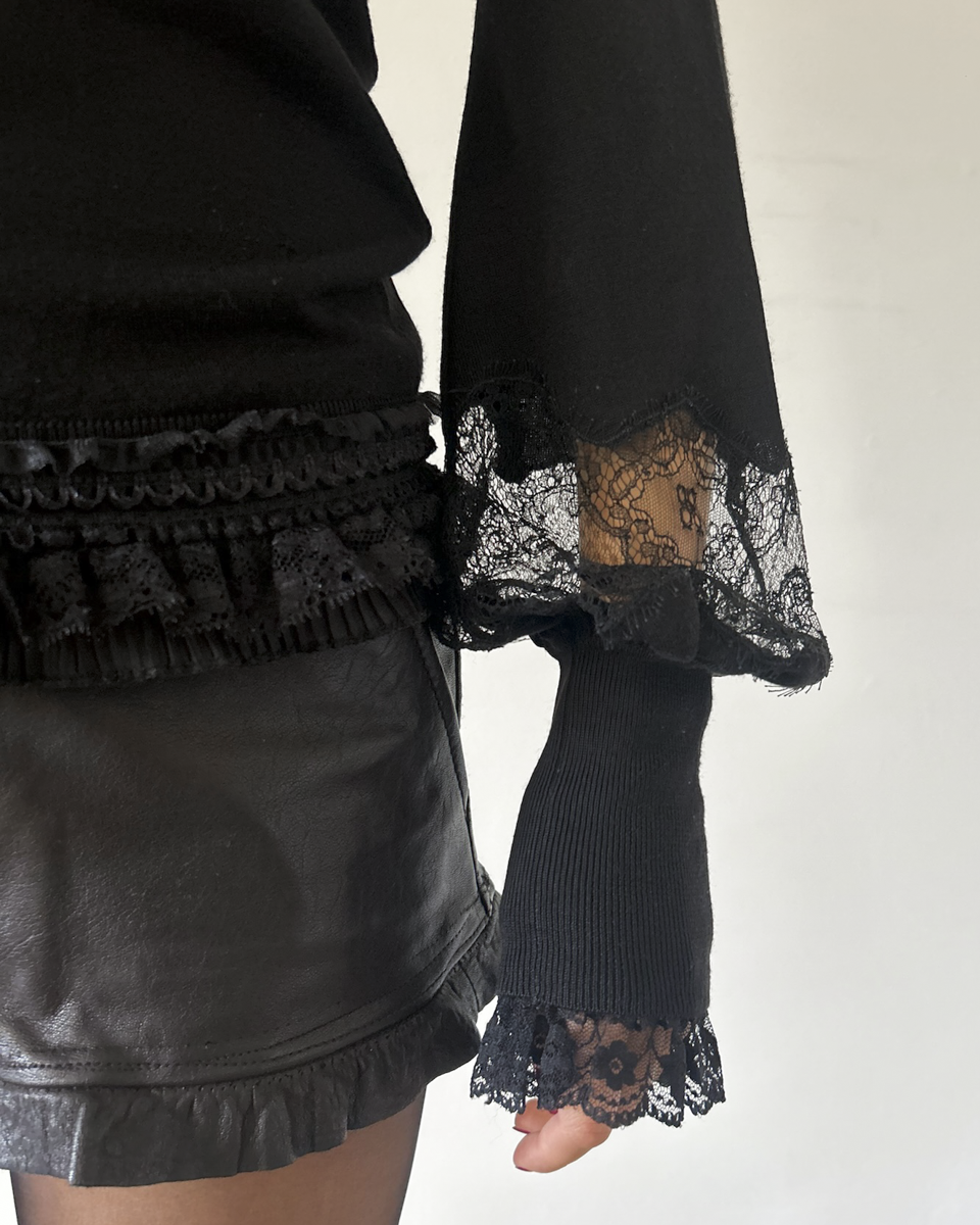 Valentino “Hiver 2008” FW2008 black wool victorian sweater with sheer lace balloon sleeves