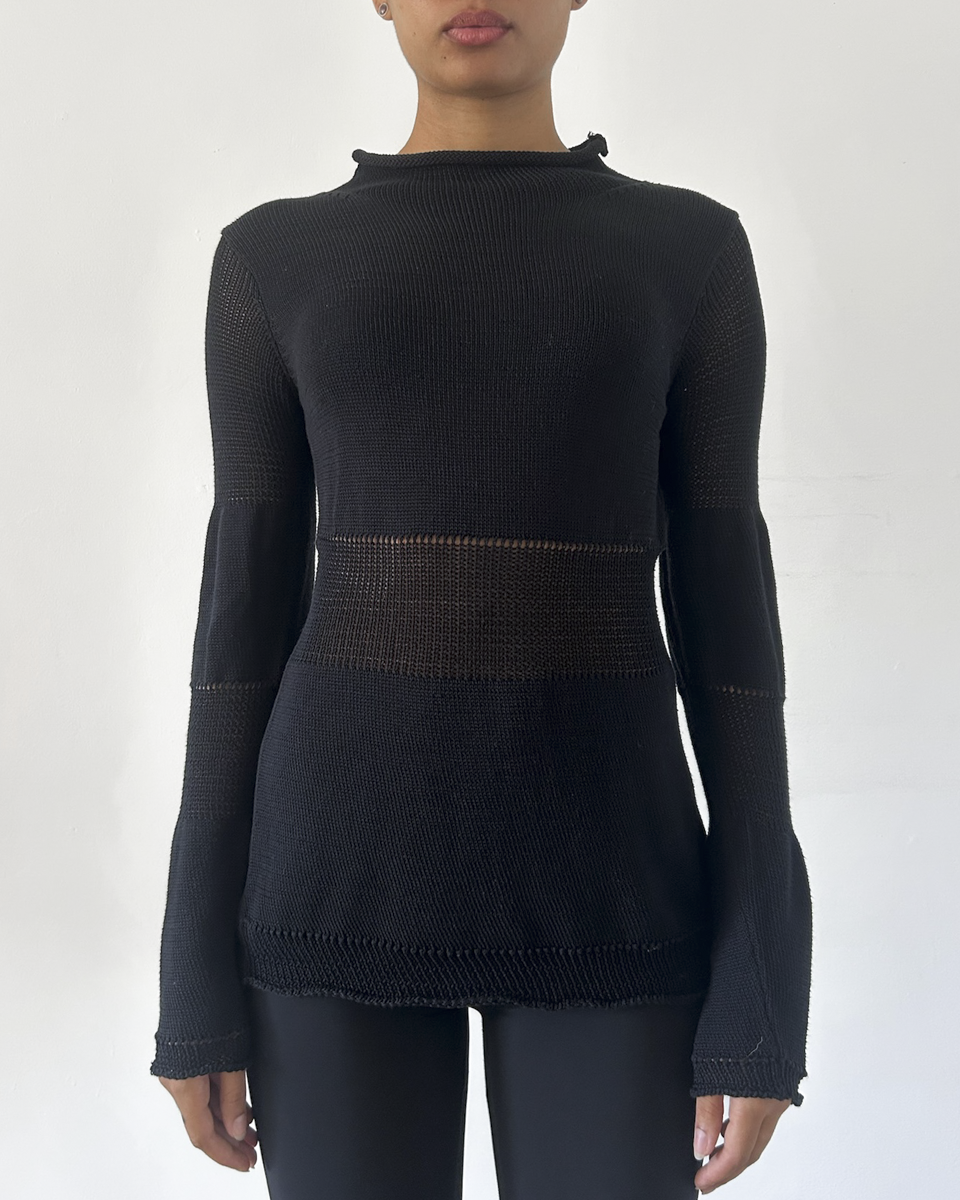 Y’s Yohji Yamamoto AW2002 black peplum sheer knit sweater with peplum detailed sleeves