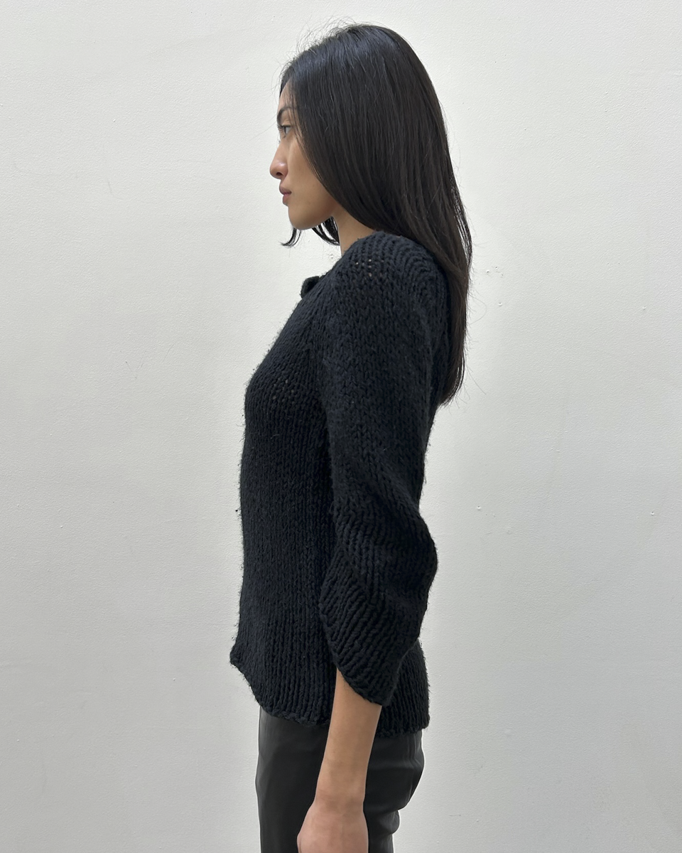 Y’s Yohji Yamamoto black open weave knit sweater