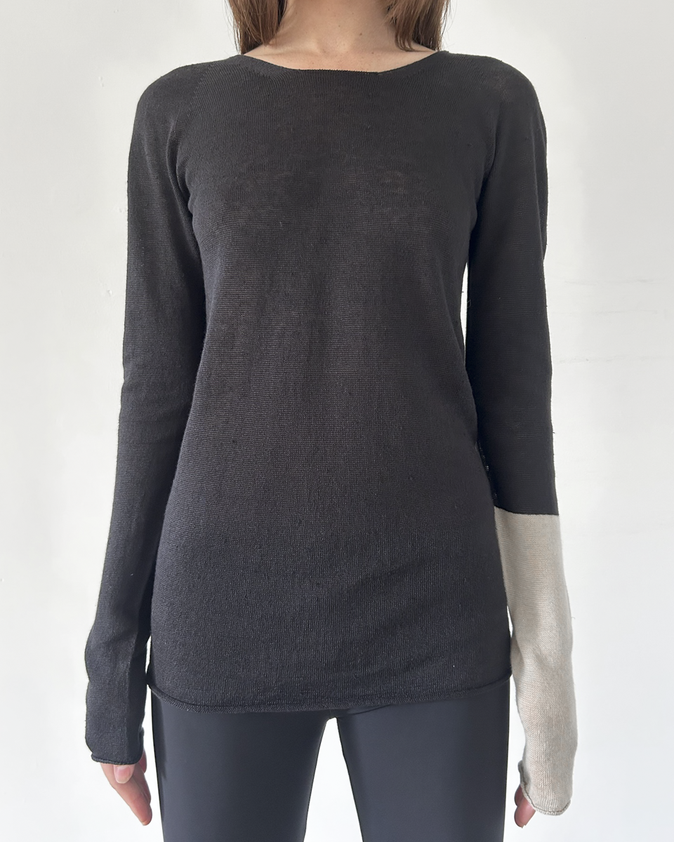 Y’s Yohji Yamamoto black long sleeve sweater with cream colored wrist band detail